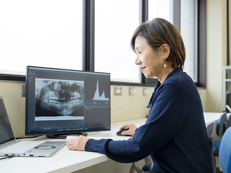 研究では、死亡後に撮影された歯科CT画像と、生前の歯科診療記録や画像資料との対比を通じて、個人識別に有効な所見の抽出と整理を行っています。また、観察者間の評価のばらつきや再現性といった、法医学的証拠として重要な要素についても検討し、実務に耐えうる識別手法の確立を目指しています。さらに、医科CT画像や解剖所見と歯科所見を統合的に評価することで、より確実な身元確認につながるアプローチを探究しています。